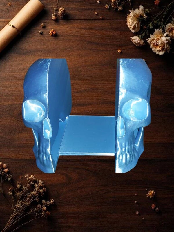 Buchstützen Totenkopf in einem schönen Blau Glänzend jedes 3d stück ist ein unicat